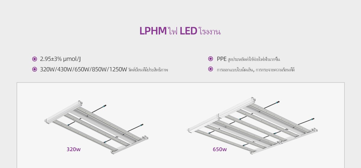 ไฟปลูกพืช LED LPHM 320W สำหรับอาคารพาณิชย์ เป็นอุปกรณ์ให้แสงสว่างเสริมระดับมืออาชีพที่ออกแบบมาสำหรับพื้นที่เพาะปลูกขนาดใหญ่