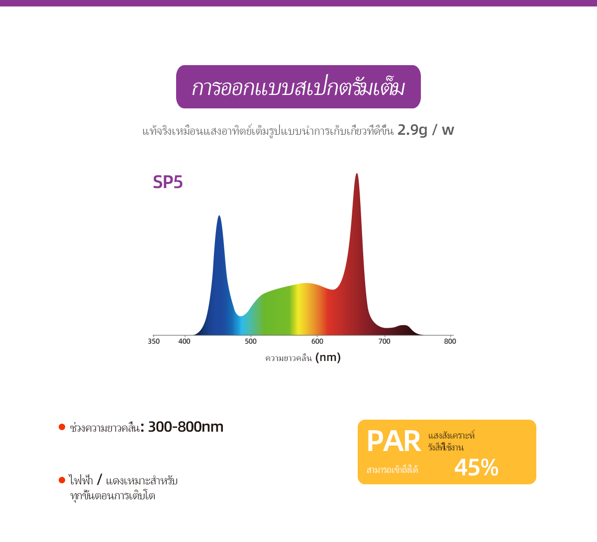 | ประสิทธิภาพของ PAR | 2.95 ไมโครโมล/จูล |
